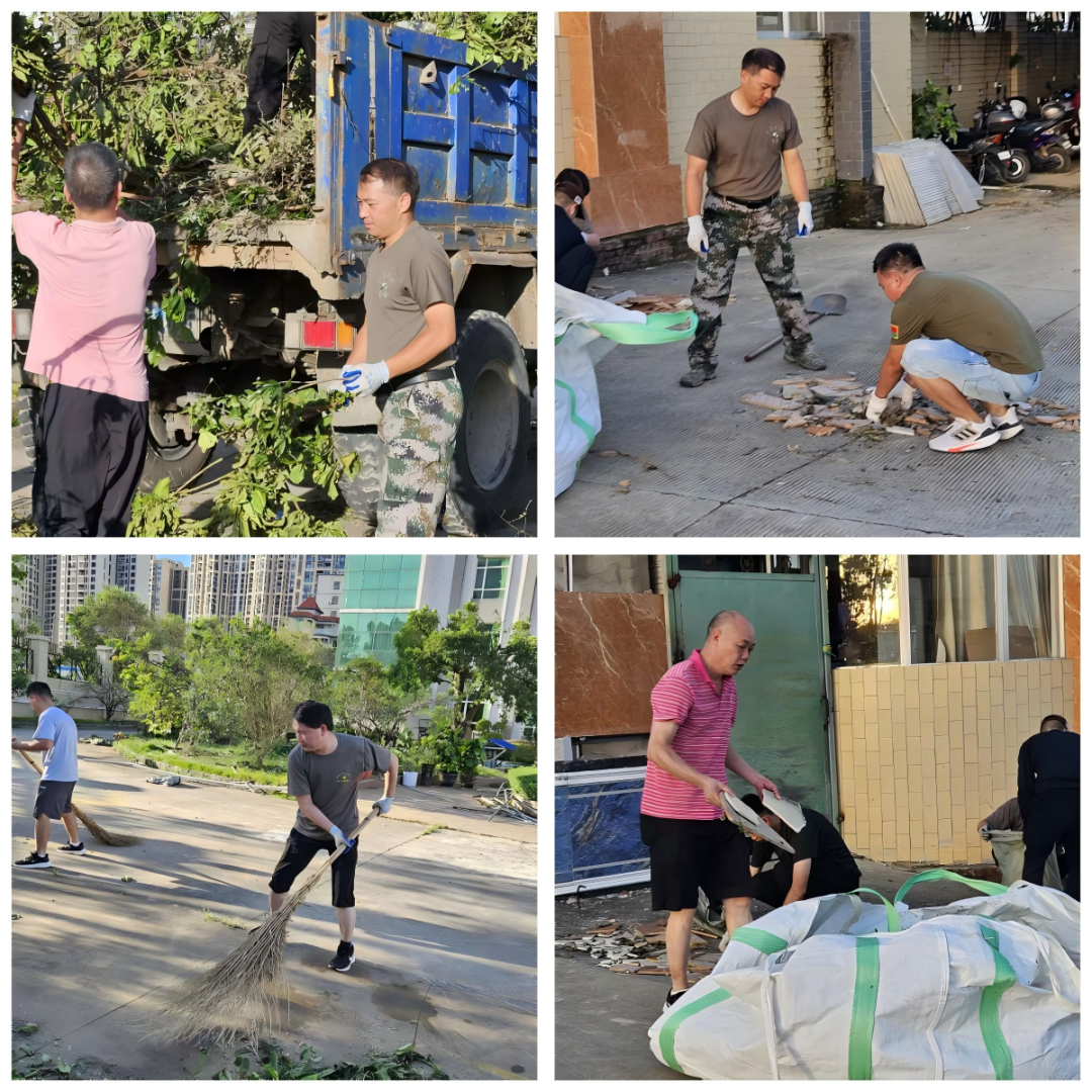在狂风暴雨的猛烈侵袭,道路交通受阻、树木倒伏、设施受损毁,面对严峻的灾情,退役军人事务局迅速响应政府部署要求,于10 月 7 日紧急组建救灾复产,他们当中既有经验丰富的参战老兵,也有退役后积极投身地方建设的年轻士兵共同构成了一支战斗力强劲的救灾力量。